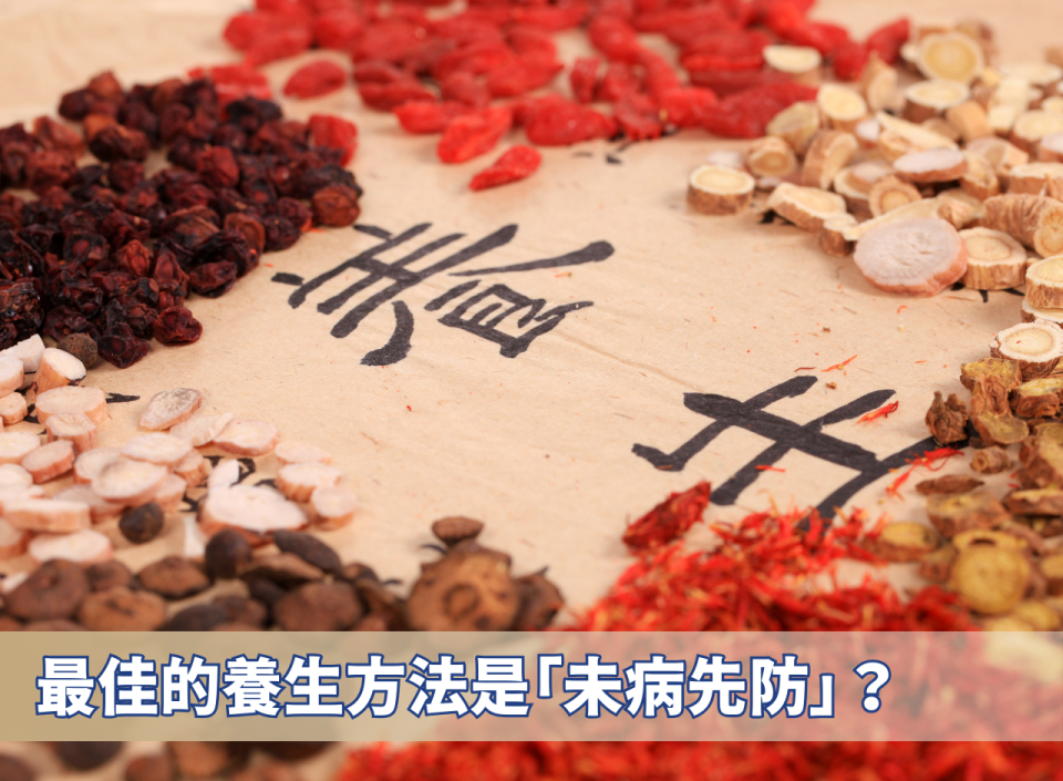 在中醫理論中,「治未病」是一種充滿智慧的健康觀念,源自《黃帝內經》。簡單來說,就是在還沒生病之前便積極進行預防措施,減少發病的機會。其中,「未病先防」就是我們常說的養生,也是「治未病」最重要的精神之一